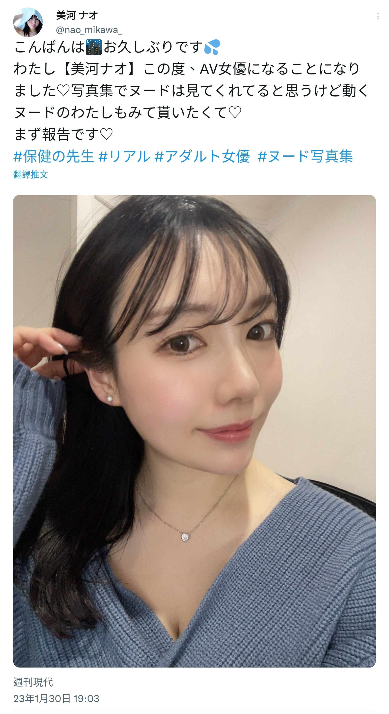然后,这位在美河ナオ(美河奈央)就在昨天宣布要拍AV惹〜