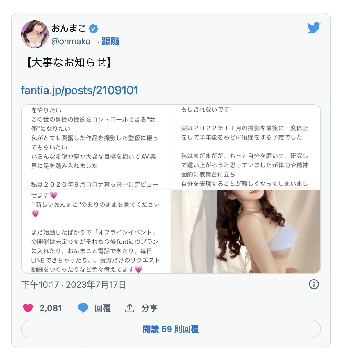 之后要怎么办呢?志恩まこ(志恩真子)是转而向付费粉丝团努力,包括照片贩售以及与见面会的实体活动都是她接下来要好好努力的地方,我常说出道就是为引退做倒数计时了,志恩没有拿到片商的专属合约却可以从2020年9月一路坚持到现在真的是不错了,谢谢她、也祝福她!