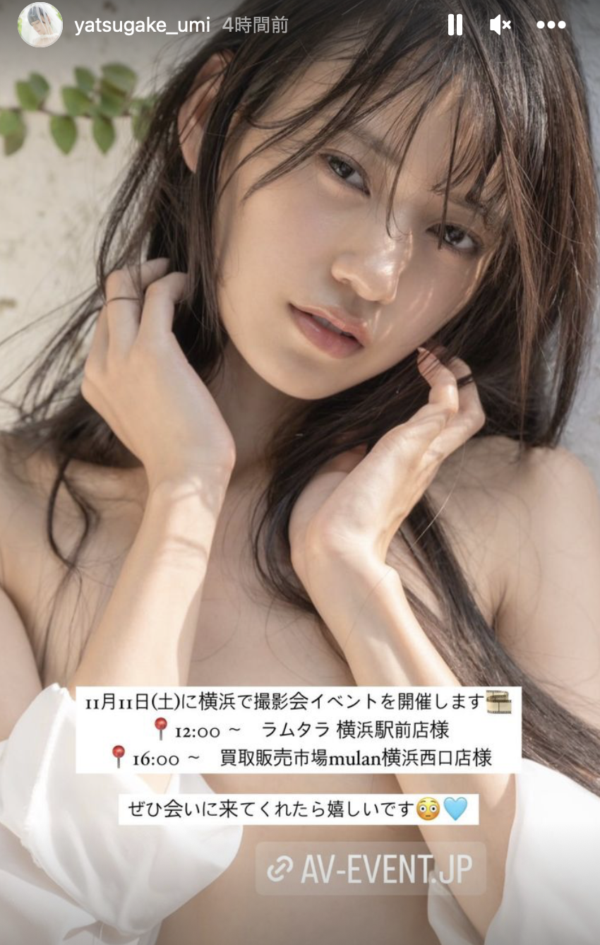 11月4日是2024月历的发售纪念会(东京秋叶原)、11月5日是Presstige潮牌的见面会(大阪)、11月11日有两场摄影会(横浜)、12月16日要参与蚊香社女优总动员的见面会(东京秋叶原)⋯我们都知道顶级AV女优工作很多,但像蚊香社帝国双璧凉森れむ(凉森玲梦)和八挂うみ(八挂海)工作那么多的还真不多见ー我想除了蚊香社特别操之外,凉森和八挂也真是配合度很高的好孩子⋯
