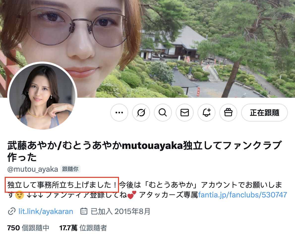 理由很简单,因为她离开了力矩的事务所LINX,虽然她在X(https://x.com/mutou_ayaka)的自我介绍中说「独立して事务所立ち上げました(我自己独立成立了)事务所」,但问题是タッカーズ(攻击者)接不接受?如果接受那她应该还可以继续下去,但如果不接受嘛……