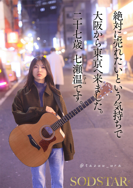 不过SOD STAR还是喜欢藏啊,虽然剧照什么都给你看了,但宣传影片还是什么都不给你看,直接放一段自弹自唱的影片到底有多少效果坦白说我非常怀疑—虽然艺能人是必须要好好珍惜没错,但这样的宣传方式我觉得太保守了,希望不会影响到七瀬温的发展: