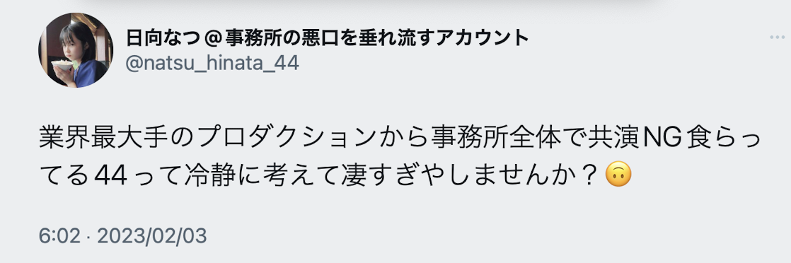 「44Management(日向的经纪公司)被业界最大间的事务所拒绝所有共演,冷静想想这不是超严重的?」