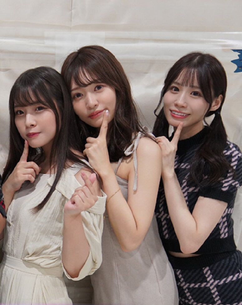 反而是八木奈々比较奇怪,论出道,2019年12月登场的她比起另外两位女优多了两年半的资历,算是学姊了,然后未歩和古川私底下交情很好,常常一起亮相,八木就比较没有和她们一起混,被编在一起有点像是一个姊姊带两个妹妹〜