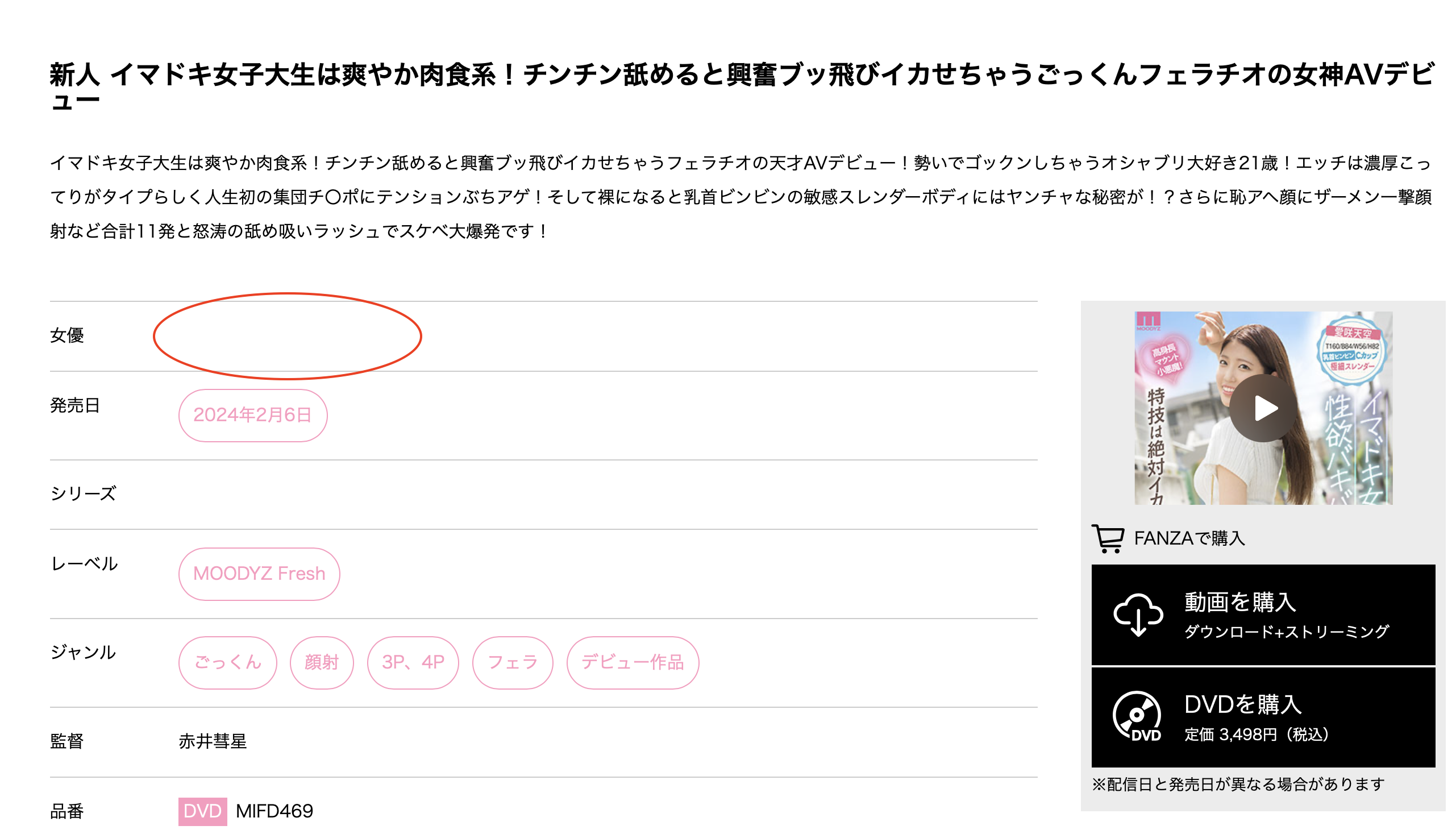 哪里怪?首先,这位被设定是女大学生的女优明明在封面上写了名叫「爱咲天空」,但不知道为什么在Moodyz的官网却没有登录她的名字;再来,她的人设是肉食系的女大学生,21岁,看到鸡鸡就想舔,所以片商为了满足她就找来了一堆棒子给她吸,最后11发精虫炸弹连续炸裂,射得她整脸都是〜