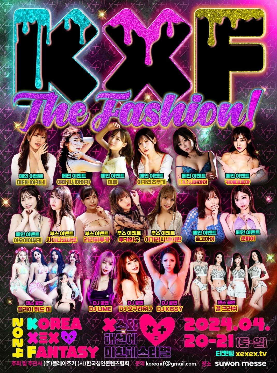 妈妈咪呀,在经历过第一届成人博览会后,韩国要举报大型活动真的是困难重重;正好事务所C-More的经纪人就在台湾,他们家有三位女优miru 、明里つむぎ(明里紬)和枫ふうあ(枫富爱)要参加活动,所以我马上跟他询问了最新状况: