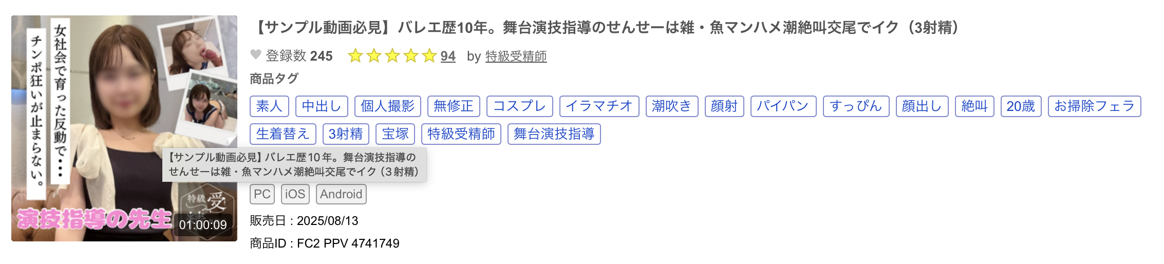 你看了这支番号为「FC2-PPV-4741749」的作品吗?
